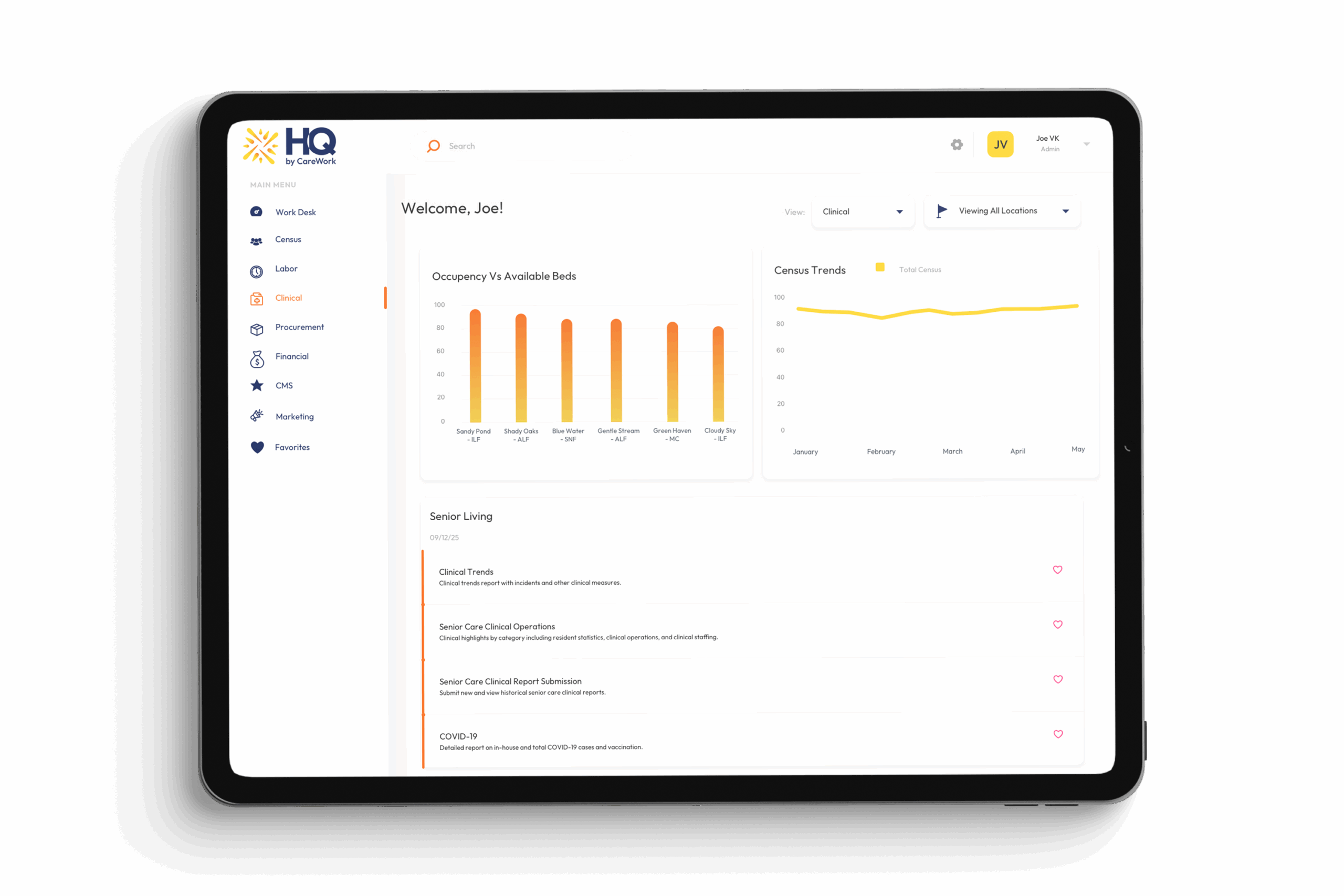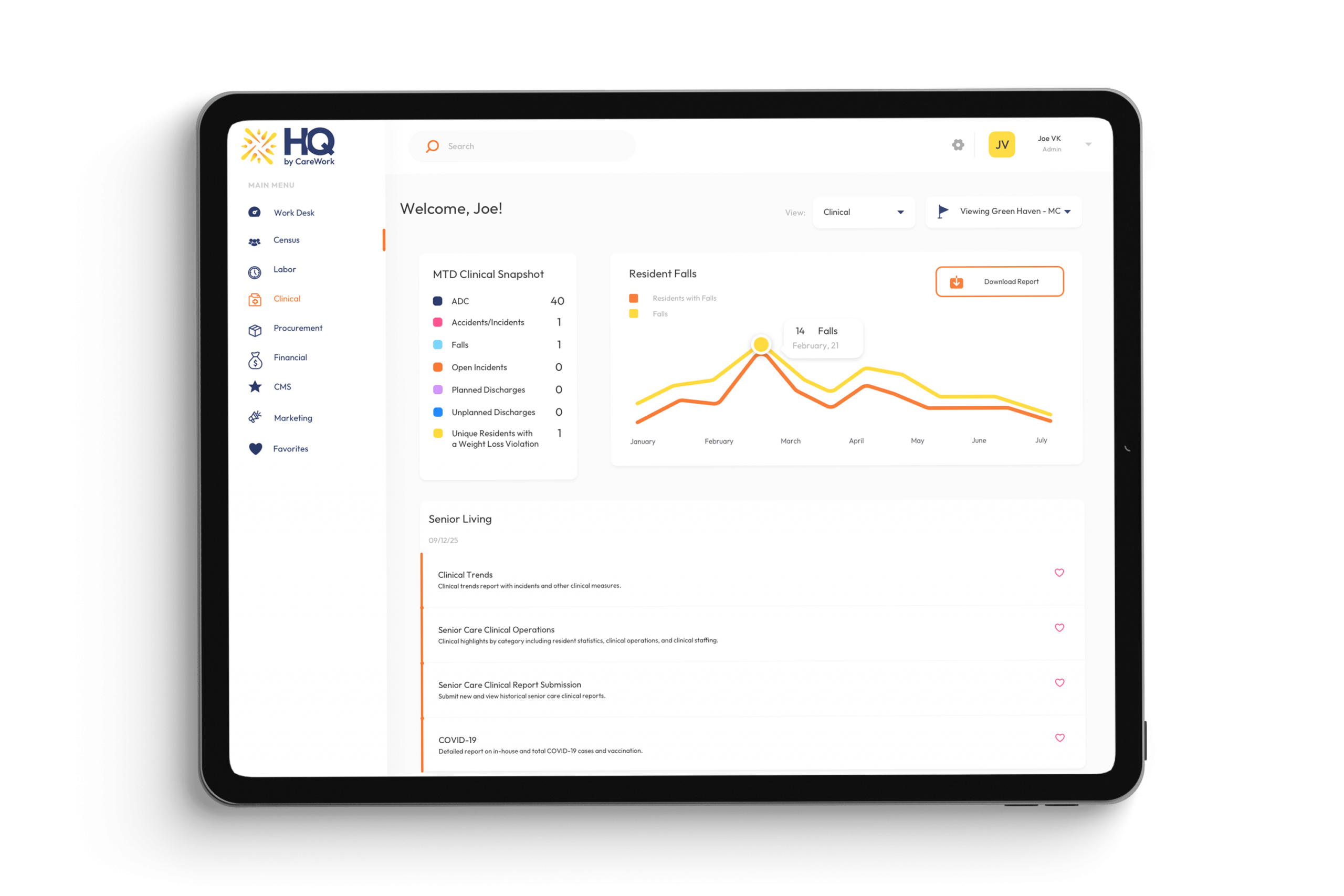 HQ has transformed how we manage senior care operations. What used to take hours—sometimes days—of manual reporting using various source systems, now happens in minutes.