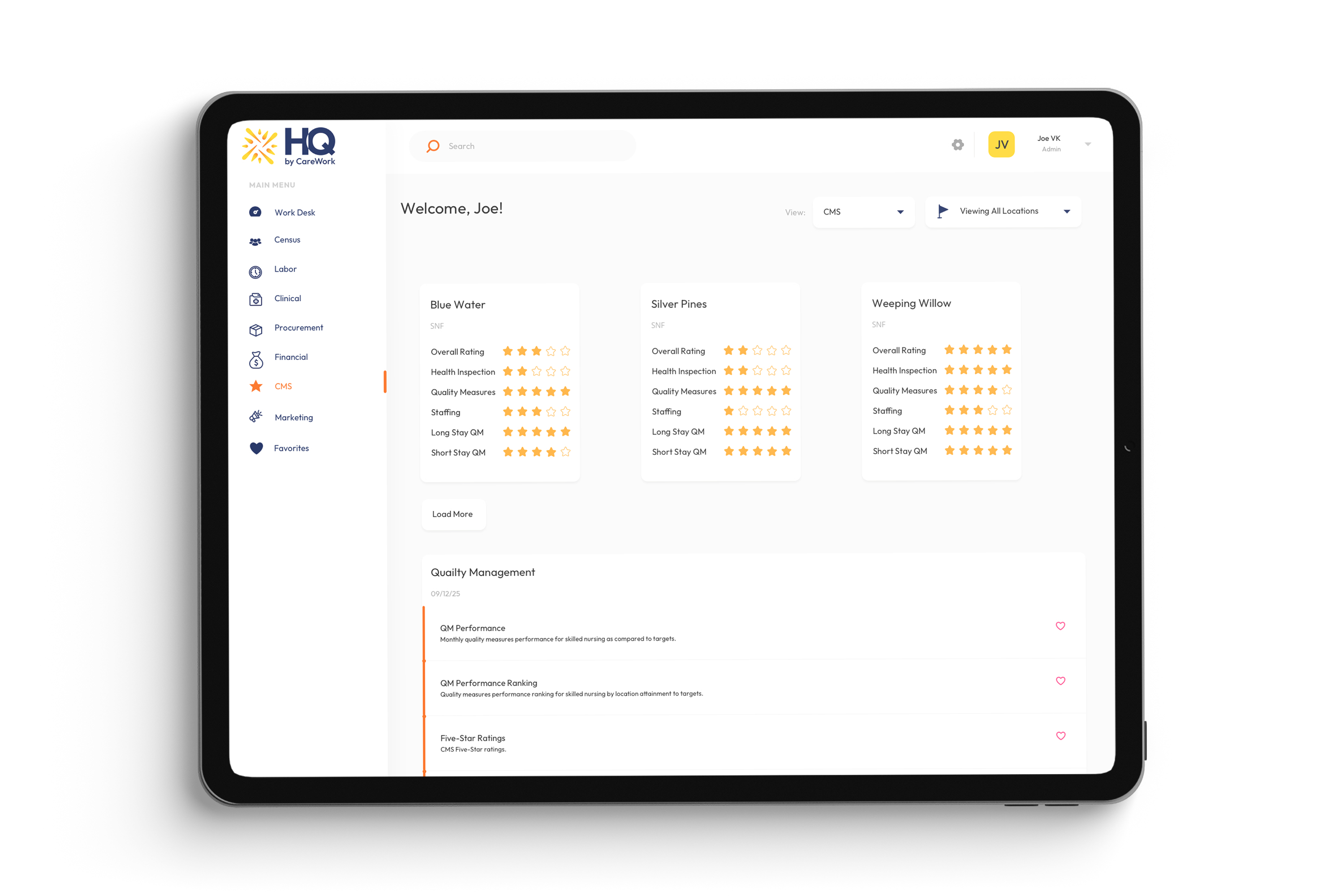 HQ by CareWork has been a godsend. Collecting Clinical Quality Measures used to take a day and a half, now with HQ by CareWork, it takes only five minutes for all facilities!